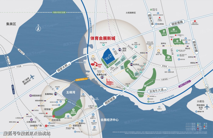 项目坐拥 “一隧三地铁” 立体交通网:翔安大桥 5 分钟直达五缘湾,10 分钟通达岛内核心商圈;地铁 3 号线体育会展站、东界站已运营,4 号线(在建)、11 号线(规划)环绕,未来可实现地铁换乘全岛通达;滨海东大道、翔安大道、海翔大道构成快速路网,自驾可快速抵达厦门北站、翔安国际机场(2026 年底通航),真正实现 “近岛而居、全域通达”。