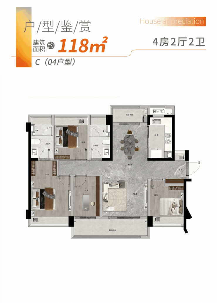 户型产品:91-172㎡三至五房