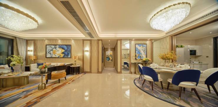 工艺:丰富饰线、中式雕花、对称木饰、繁复装帧,看不见的隐蔽工程亦不遗余力投入,全面落地星河湾4.0标准