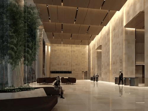 约5.5米精装挑高大堂,塑造商务奢阔体验