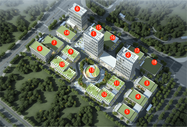 总楼栋:18栋(标准办公2栋,独栋办公13栋,配套楼栋3栋)
