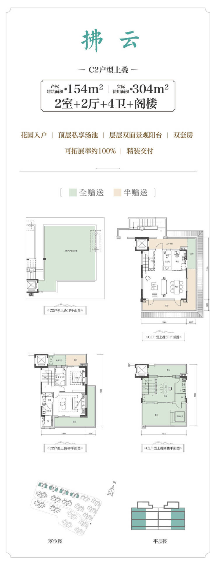 叠墅丨产权建筑面积约128-218㎡,可拓展率约60%-180%