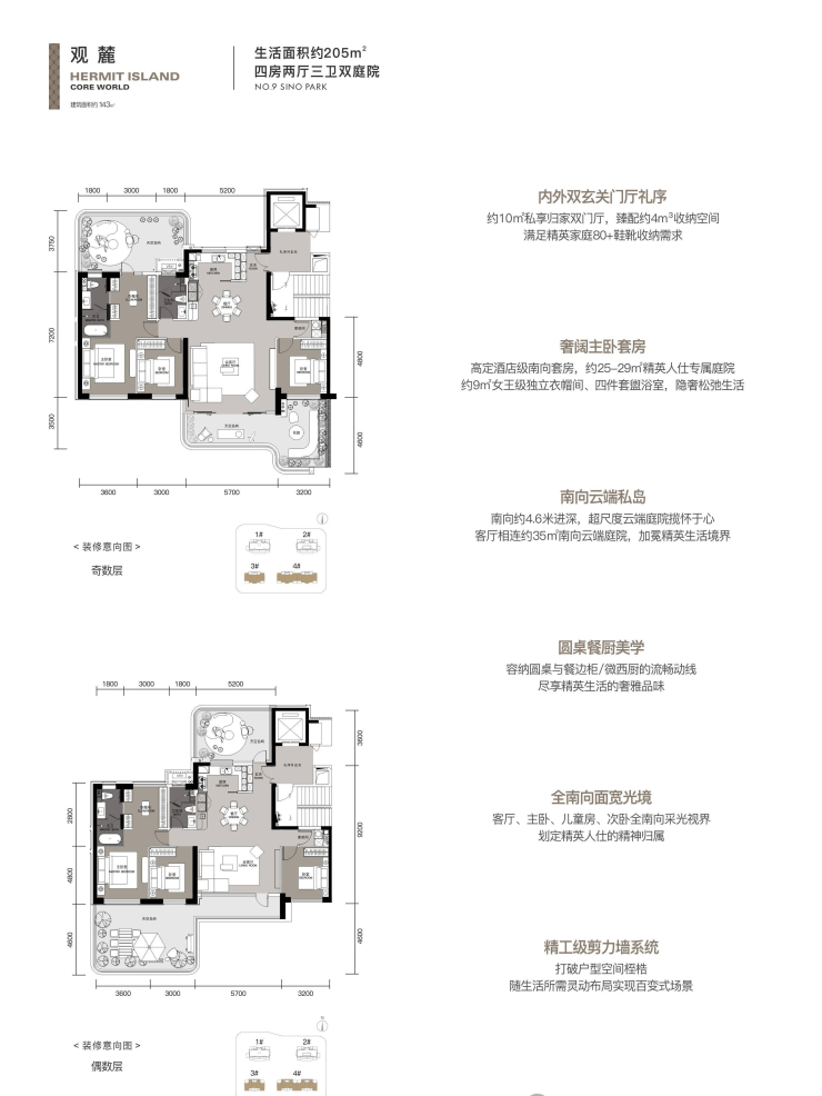 宋式园林结合海派隐奢视觉,营造“山隐、望亭、密林、拾趣、弄雅、逸廊、归梦”七重静逸领域,高定都会隐仕的家族浓荫。