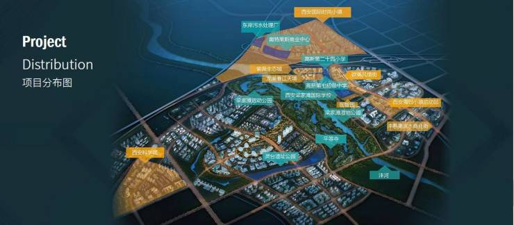 沣邑大桥位于西安国际社区北部,全长526米,桥面红线宽度60米,双向十车道。桥梁由世界排名第一的工程咨询公司奥雅纳(Arup Group)设计,主桥采用人、车、分离式三塔叠型斜拉桥结构形式,设置人行道平台系统,行人可通过全景楼梯和电梯进入道路和河流两侧。汇集绿色空间以及优质公共空间理念打造出穿越沣河的创意慢行步道,鲜明的主题元素、动态的照明系统更将为城市夜景增添绚丽笔墨,建成后将成为区域打卡新地标。