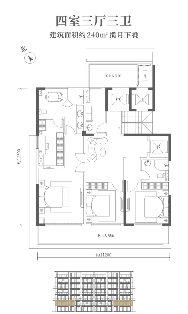 科为揽月臺在2.0的超低密社区内,规划9栋叠拼和3栋大平层产品,其中大平层起步约237㎡的建筑面积,叠拼产品起步约240㎡的建筑面积