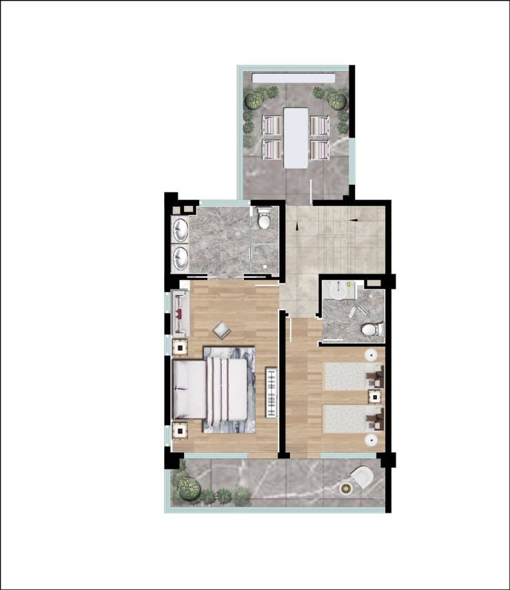 【7.3米挑空L 型转角露台】