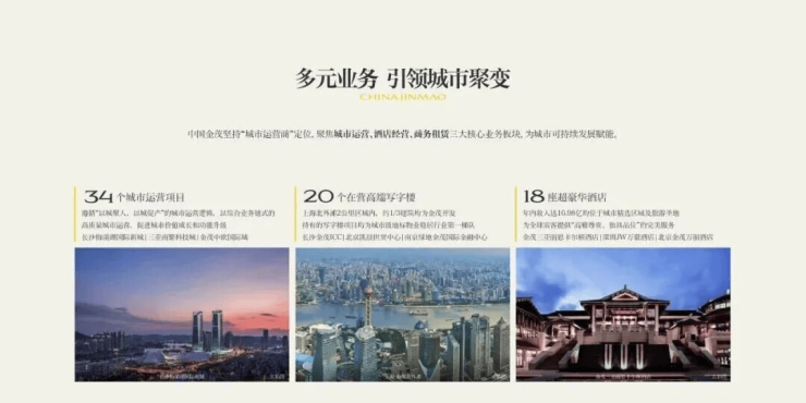 中国金茂是由国资委批准的16家以地产为主营业务的央企之一,2007年在香港上市,总部设在北京,是央企开发商中唯一坚持做高咨项目的房企。作为最快跻身千亿厉企的央企之“,15年时间,全国布局56座核心城市、打造超300余个高端销品项日,全中同拥有超百万业主以超过662.36亿元的品牌价销位居“中国500最具价销品牌”第171位