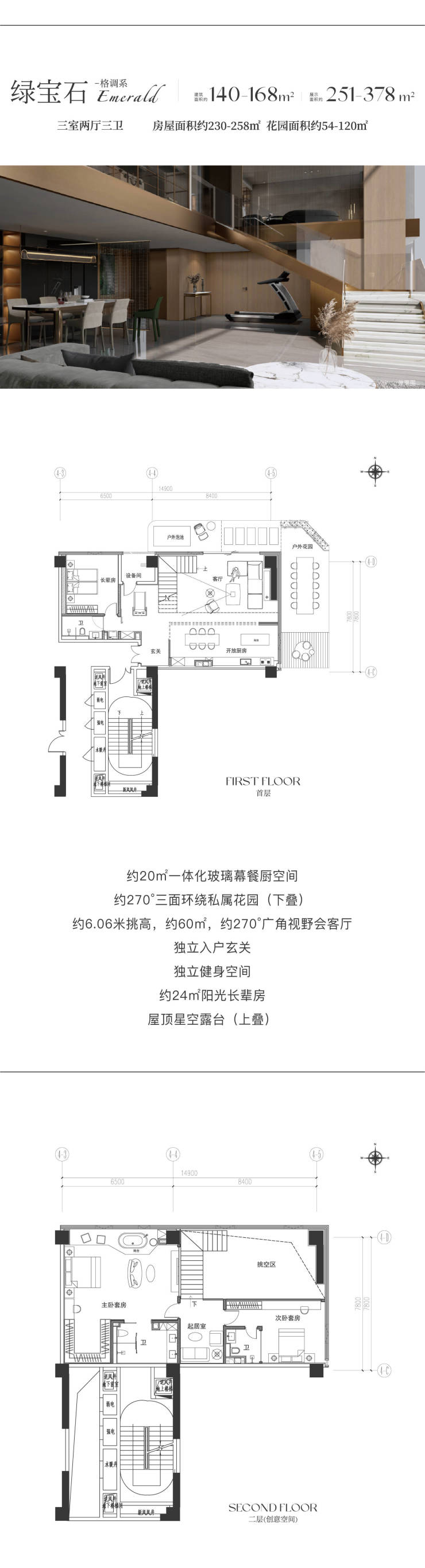 兰极之星打造当代高端建筑艺术建筑外观以黑、金为主色调的全玻璃幕墙设计不阻拦光线自由散漫地洒落在各个角落国际顶奢商业综合体,层高约6.06m,高奢消费主场叠拼层高约6.06m,下叠户外花园、上叠屋顶花园