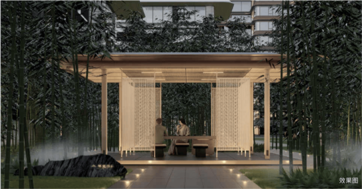 叠院内在美学的质素营造,通过引入长安八景中“草堂烟雾”一景,为整个组团营造了隐逸、静谧的生活氛围
