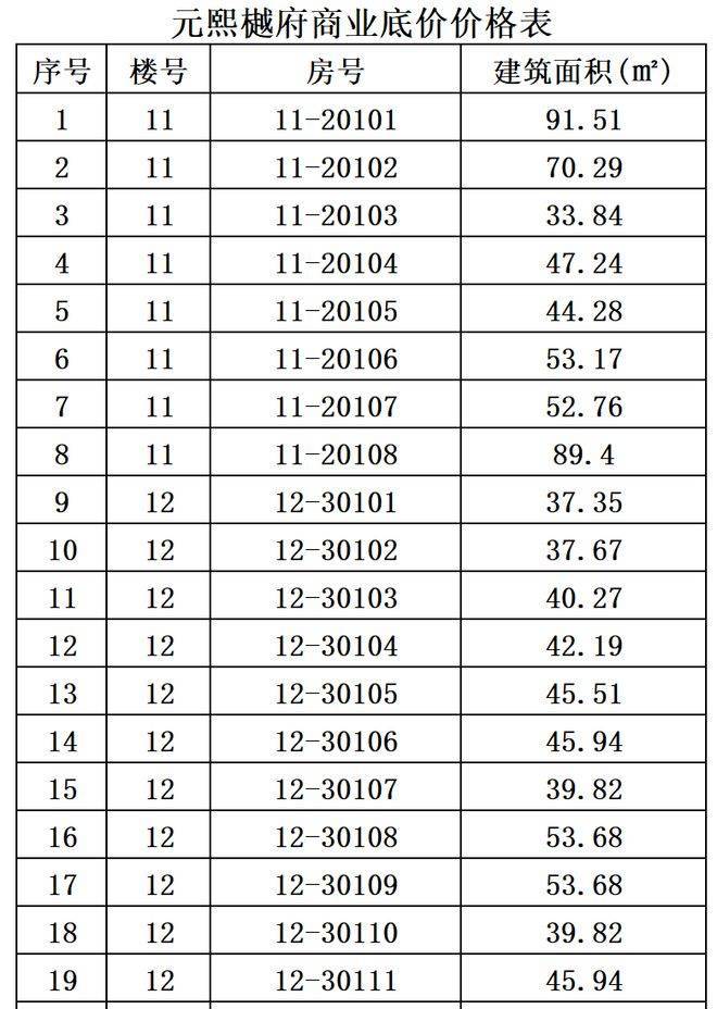 面积段分布:30-50㎡ 28间 50㎡以上 11间