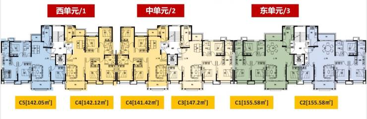 洋房6#,总高9/11层,1T2户,三个单元;