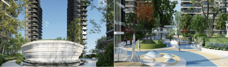 园林设计灵感来源于素有“仙都”“天下第一福地”之称的秦岭山脉,提出“云氧·逸居”的主题理念。