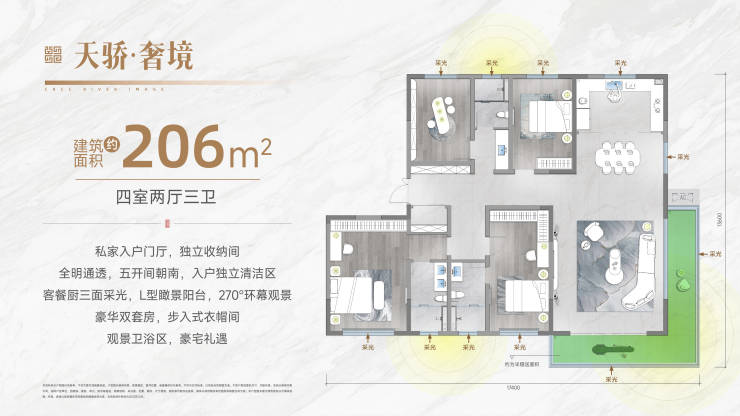 两轴五进一环多景,主入口清流浅溪、名贵造型松三株迎客,吉祥如意