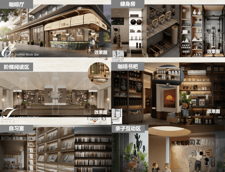 打造架空层泛会所空间,内部规划了咖啡吧、自习室、阅读区、亲子互动区、儿童游乐区、健身房、瑜伽室等多种空能空间,能够在小区内部满足全龄段的休闲运动需求。