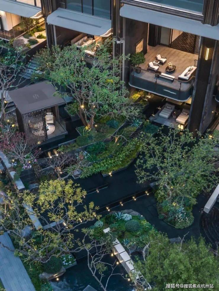 山川溪谷与休憩架空层空间共汇,于庭园深度,打造一处可游、可观、可赏的自然谧境。
