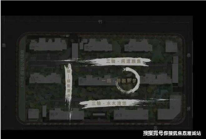 首推地块以南北一轴+东西两轴及核心景观区,构成“一园三轴”的景观结构,移步异景,如诗如画。