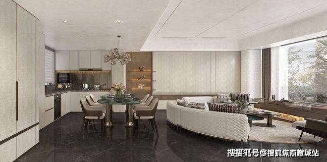立面腰线等细节处则提炼汝窑“金线”传奇符号,以还原精雅的繁复工艺,为建筑线条进行金线勾边,点睛强烈而隽永的美学仪式感;较高的窗墙比延伸视野边界的同时,呈现极简派超高颜值…诸如此类的精工细节不胜枚举,真正做到了坚持骨子里东方文化标签,用现代材料与传统技法相结合,打造出符合现代审美需求的高质人居产品。