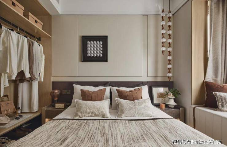 主卧也是采用套房式设计,带有独立的卫浴空间,满足业主对“私密、尊崇”的居住需求。房间内几乎每一平米都得到了更大化利用,整体尺度感远超同面积段其他产品!