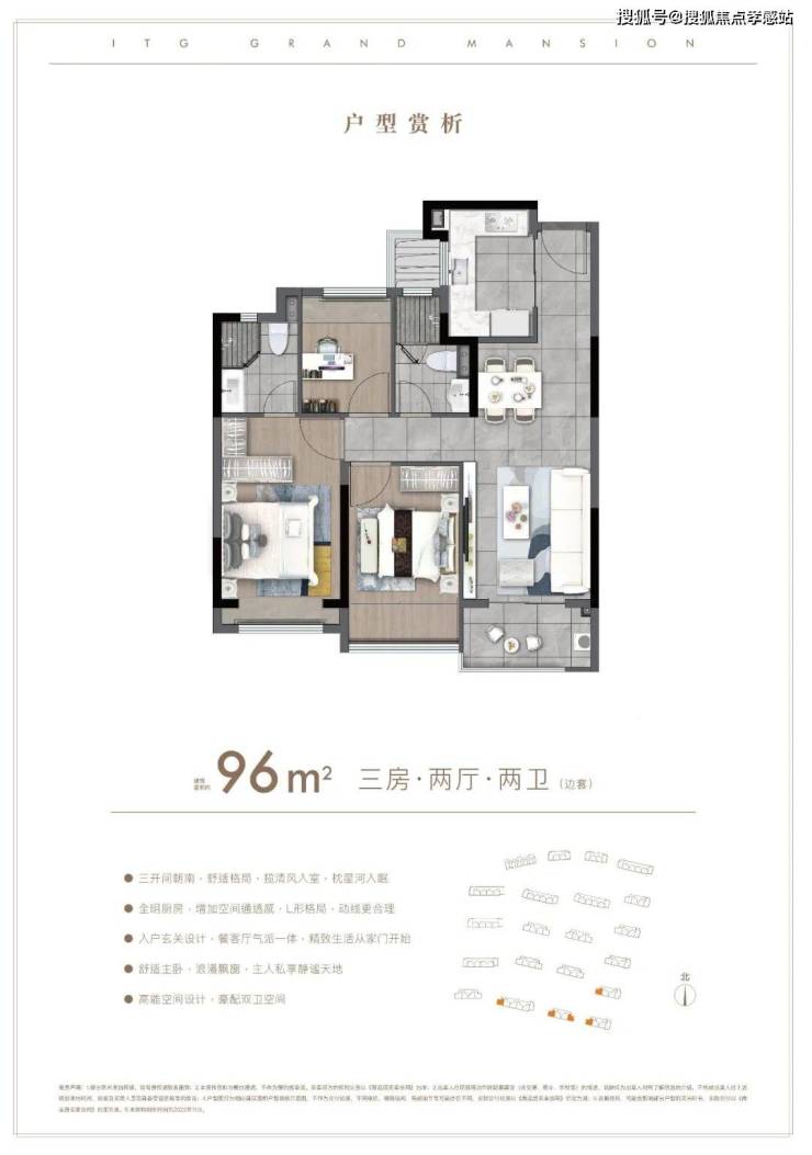 户型方面:约85-96㎡的全三房设计,每一款户型都是会传递出国贸的产品观。南北通透,布局考究,动静分离。