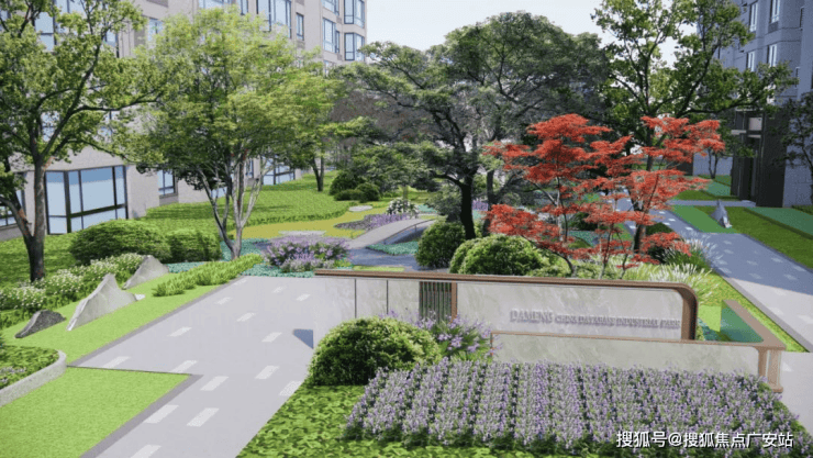 小区景观打造方面,设置“一巷两湾·五庭九弄”,以“和风巷,月牙湾,杏花疏影溪云染;五庭汀桥烟雨,九弄道尽蝶澜,傍花随柳梦夕岸”打造如诗的意境。