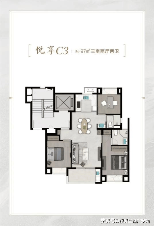除了C1户型外,此次还有约99平米C2户型、97平米C3户型