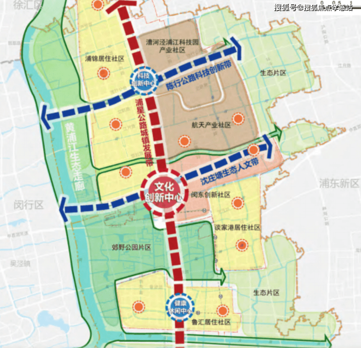 在2035规划中将浦江镇定义为闵行中心城区,打造“一廊三带三心”空间布局,依托得天独厚的生态资源及完善配套定义为“生态宜居板块”以及生态创新研发服务中心。