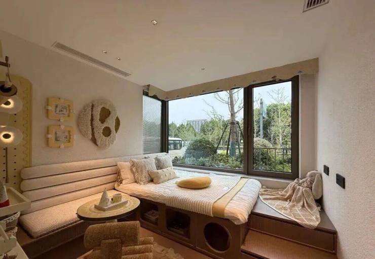 边套户型主卧为270°转角飘窗,并预留两个衣柜空间;