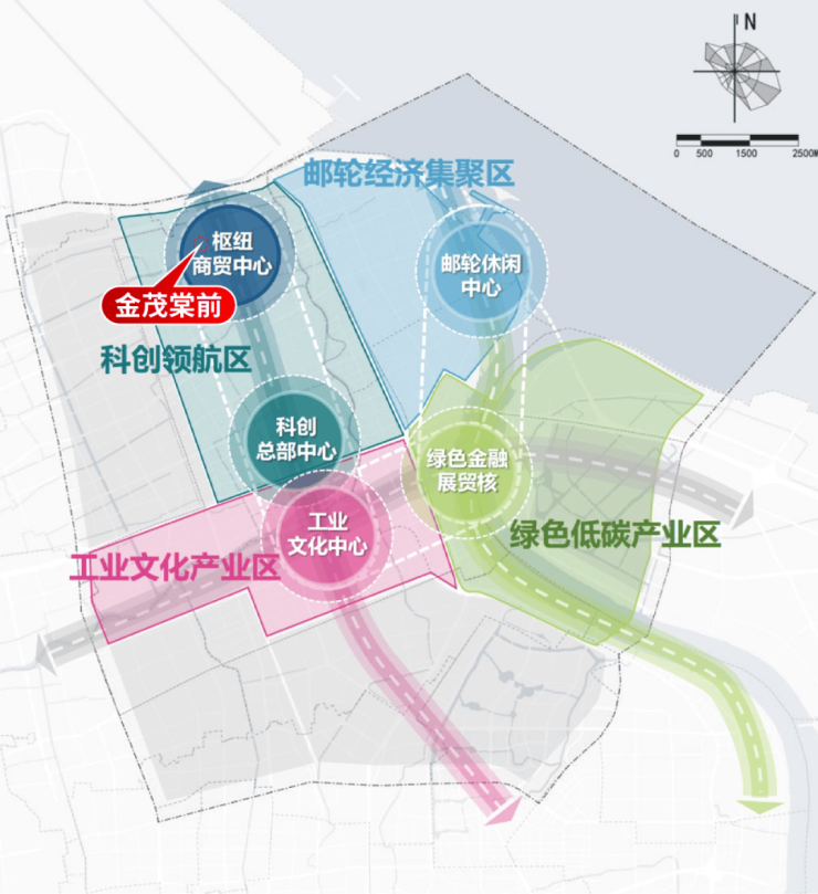 金茂棠前所在的科创领航区将以宝山站、科创总部为双核心,依托现有产业基底、特钢先行启动区和两侧科技金融、绿色制造等产业,形成科创总部聚集。