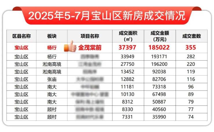 项目是2025年5-7月宝山区新房成交“双冠王”,成交套数、成交面积名列第一!