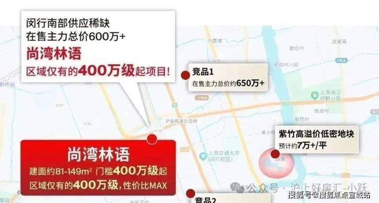 不仅如此,南闵行供应稀缺,这两年无非三大主力,两大竞品在售总价600-700万。而尚湾林语是区域唯一有81㎡的项目,400万级起的价格给予购房者非常温和的置业门槛,且随着70/90政策落幕,户型面积逐步上调到120㎡,这样的置业福利或不再有,大大加剧了买入尚湾林语的紧迫性。