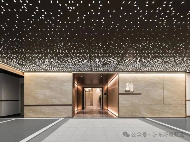 地库的星级仪式:白金砂石材铺装,古铜金属镶边,星光穹顶营造银河归家仪式