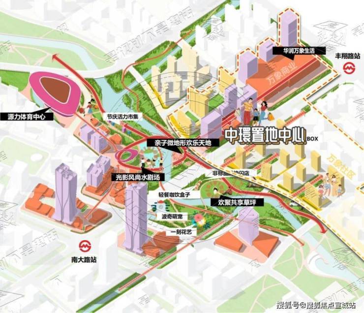 商业方面:项目本身就是一个自带商业的TOD,华润置地规划以万象系列融汇轻奢时尚、休闲生活、运动潮流等多元业态,打造北中环“都市商业新旗舰。除了未来的万象系商业(规划中),周边还有经纬汇、聚丰购物广场、上坤城市广场、山姆会员店等,购物还是比较方便的。
