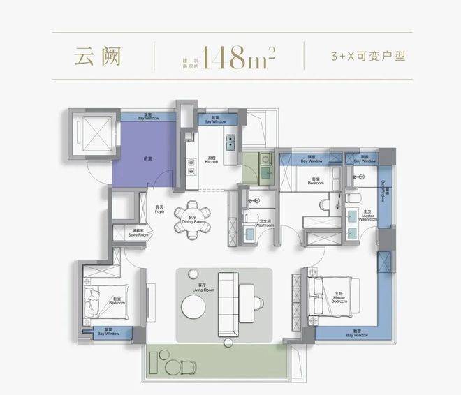 建面约125-148m²3-4房(精装高层)