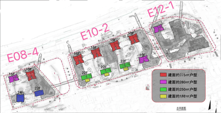 项目占地约7.7万㎡,总建筑面积约39.5万㎡。包括住宅建筑面积约13.3万㎡,商业建筑面积约11.4万㎡,办公建筑面积约9.2万㎡,文化建筑面积约2.9万㎡。其中E08-4、E10-2、E12-1这3块宅地沿黄浦江一字排开,坐拥黄浦江核心段岸线。