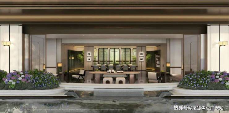 公区又有湄南河四季酒店、安达仕酒店等度假酒店的影子,通过架空层与室外景观的立体融合,大气奢华的同时,又透出一种度假的松弛感。