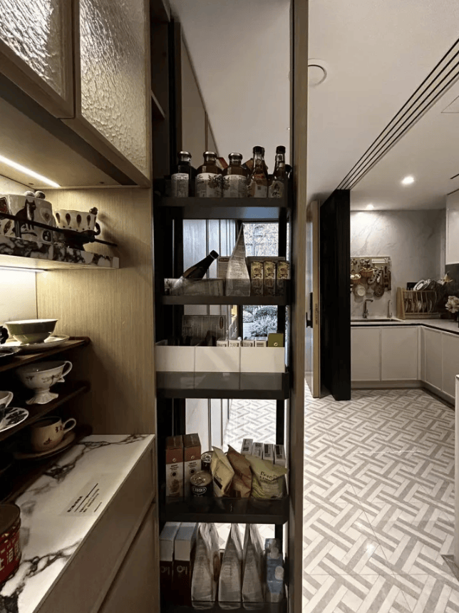 可抽拉的零食柜、厨房抽屉式碗碟拉篮、包括卫浴的收纳墙,于细节之处见真章。