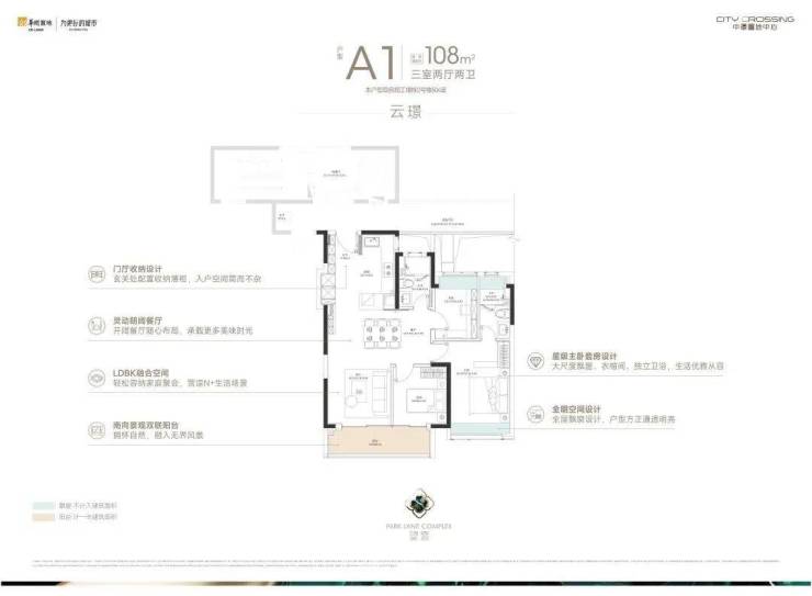 建面约108㎡的三房两厅两卫,总价约700万起,门槛友好,年轻家庭置业中环的不二选择。