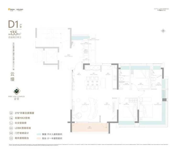 电梯厅全明通透+类一梯一户设计,满足大户型业主对于入户私密性的生活需求。此外还增加两处优秀设计:多飘窗和惊艳的MAX收纳尺度。