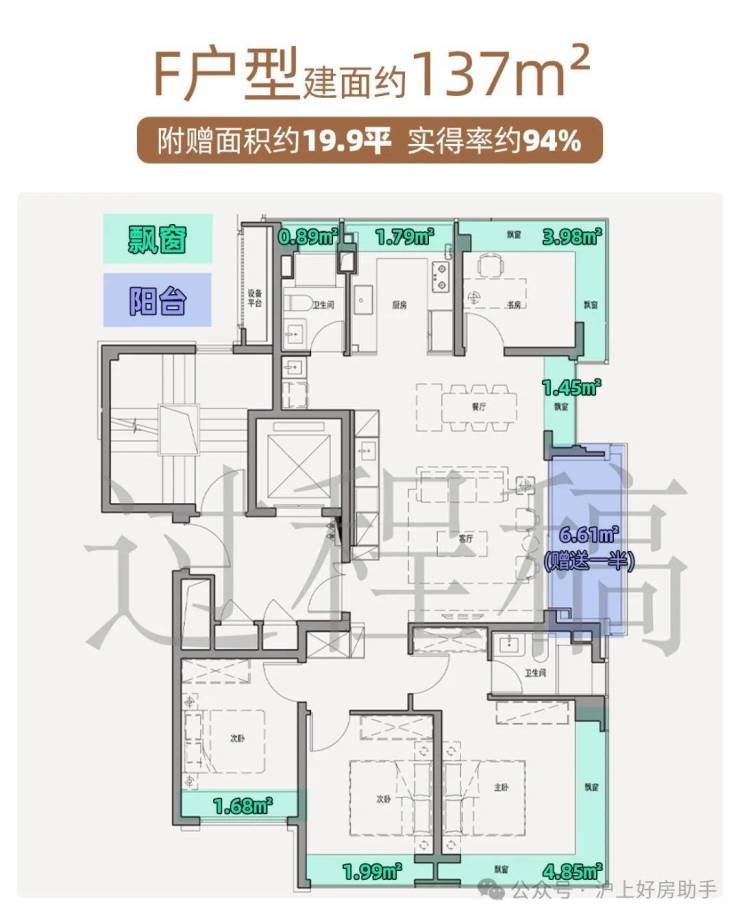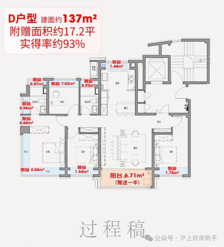 附赠空间升级:满飘窗设计,约137㎡赠送面积高达17-20.8㎡、约100㎡赠送约12.9-17.4㎡!