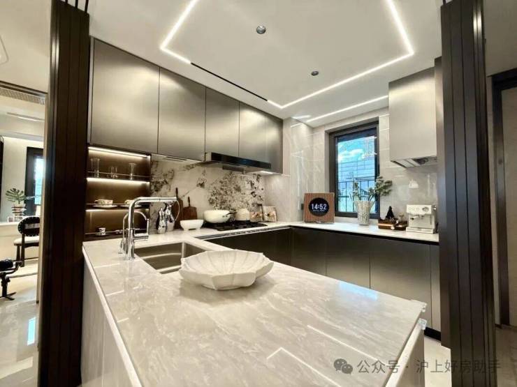2 、 装标在线:开放式厨房配置嘉格纳三件套、铂浪高水槽及龙头也是标配,可谓是配置拉满!