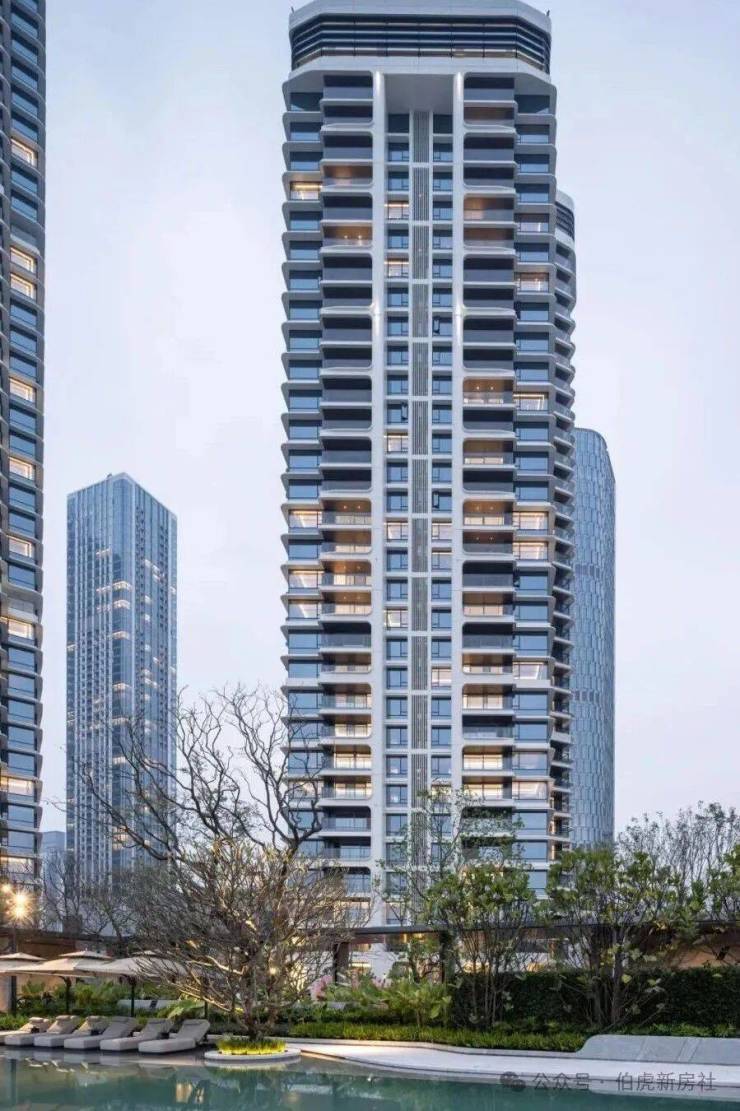 立面从湾区塔尖生活范本深圳【招商玺】汲取灵感 ,通过游艇曲线美学、仿游艇甲板设计,一线亲水布局,创造出全景舱观湖视野,以革新性设计理念重构流体建筑美学,打破了传统住宅建筑的平铺直叙,营造出海浪般流动的质感和韵律,通过立体解构手法实现建筑形体的悬浮感与艺术张力,构建出如游艇般舒展而流动的天际线,与远香湖的水岸线形成视觉共鸣。