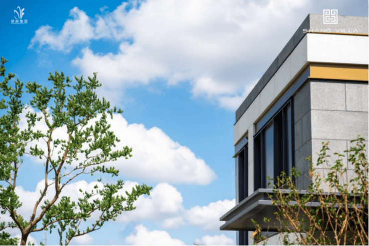 汲取赖特流水别墅的自然共生哲思、邬达克绿房子极简主义美学,归于大师源流的低密纯墅。外立面上,以灰色和米白色为主色调,选材包括石材、铝板、真石漆、玻璃及铝合金百叶,空间感、层次感更加分明。