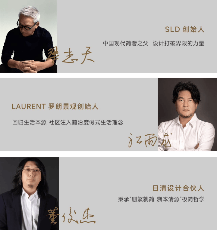 建筑设计:日清设计(代表作上海新天地、华侨城苏河湾等)景观设计:LAURENT罗朗景观(代表作中海顺昌玖里、招商外滩玺等)室内设计: