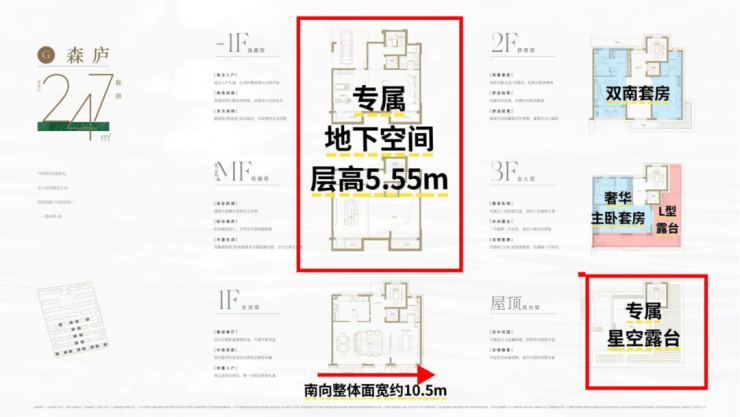 2F南向双套房,3F为独立套房,整体面宽约6.9米,并附赠L型观景露台!此外还赠送星空露台,夜晚观星、赏景都非常惬意。