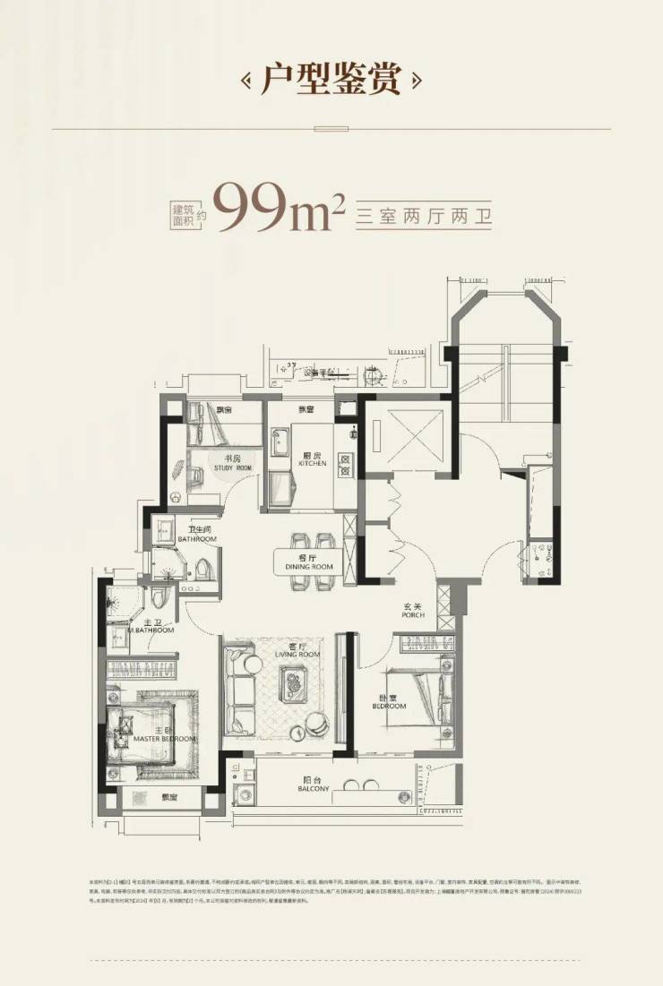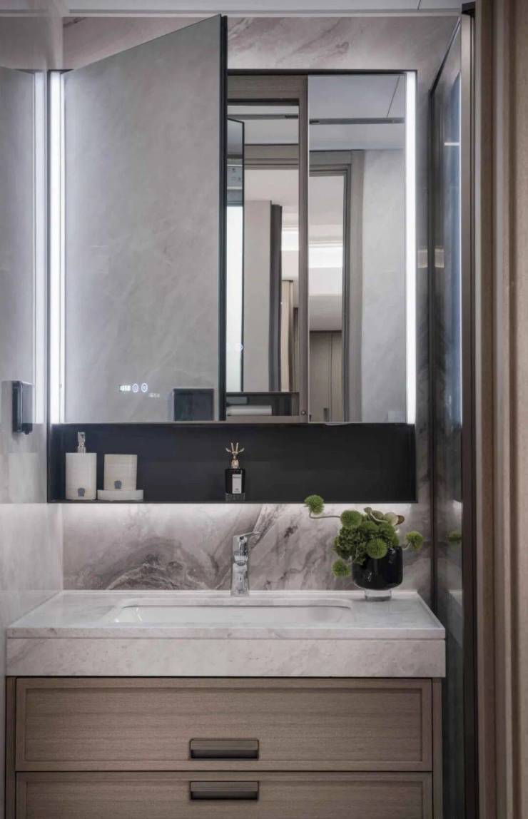 主卧三玻两腔窗户隔音效果更好,主卫“魔镜”带除雾功能,内置美妆冰箱,主次卫均是科勒(或同等品牌)台盆+智能马桶,汉斯格雅(或同等品牌)卫浴。