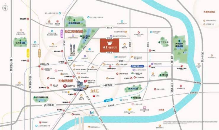 越秀长海社区项目位于杨浦五角场板块,五角场,因五条发散型大道的交汇处而得名。