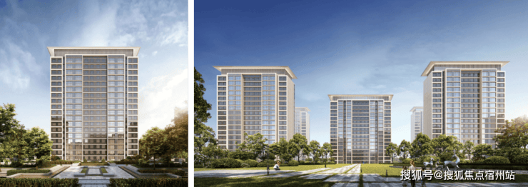 外立面采用经典时尚现代主义风格:通过温和的色彩搭配、简练的横向线条、黄金比例的立面比例、极简抽象的建筑符号、建筑顶部的飘板,呈现一个现代风格和艺术气质结合的高品质社区。