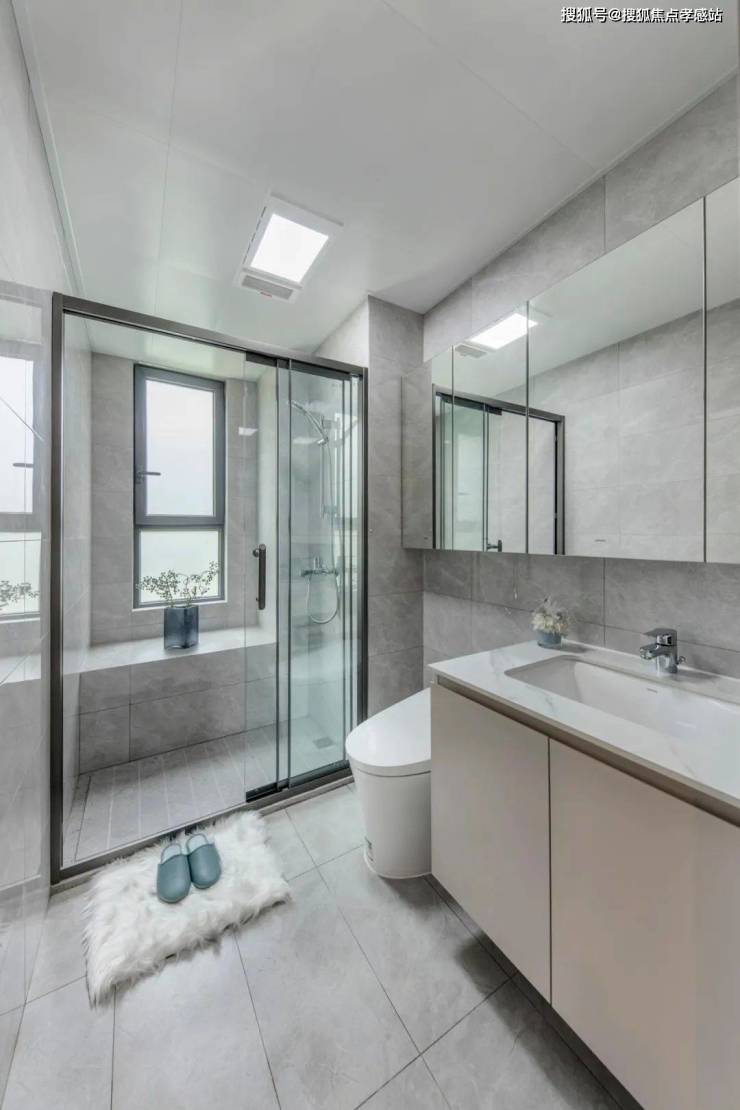 通常,主卫和次卫能拥有窗户达到全明采光已经称得上优秀了,而这套户型的两个卫生间均都有飘窗,丰富收纳可能性。