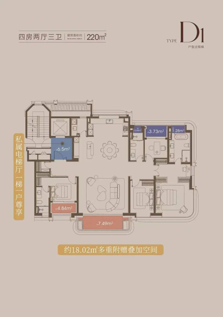 这意味着百平米的业主也能享受一整个独立的电梯厅,这是私密性的保障,更是生活的拓展。