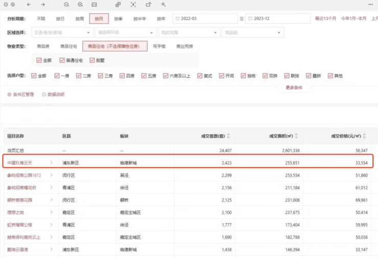 中建玖海云自首开起,共销售约2423套新房,斩获套数居全市第一(数据为上海新建商品房(住宅)数据,采集时间2024年1月4日,数据来源:克而瑞数据查询),成为临港市场的一段传奇。